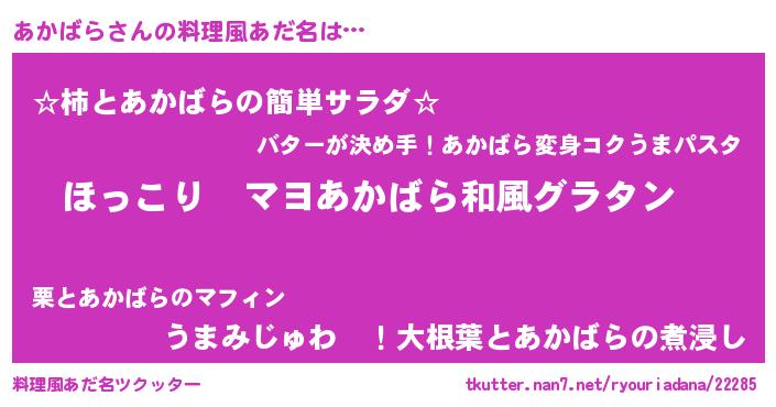 | 男性向けラノベタイトル風あだ名 | 『この素晴らしい世界にあかばらを!』 |