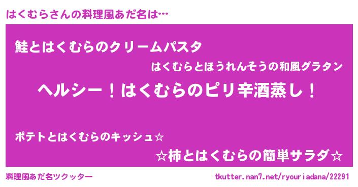 | 女子向けラノベタイトル風あだ名 | 『闇のはくむら』『死神はくむらの再婚』 |