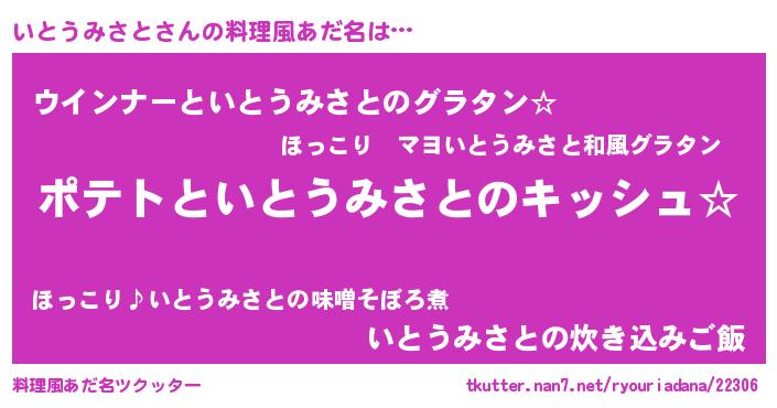 | ポケモン風あだ名 | 『ヒイトウミサト』『イトウダネ』 |