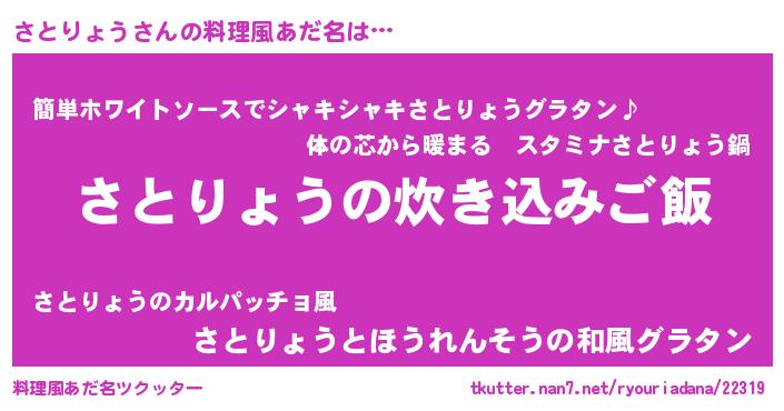 | 意味不明あだ名 | 『とにかく怪しいさとりょう』 |