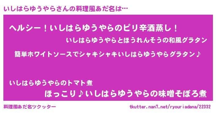 | 意味不明あだ名 | 『とにかく怪しいいしはらゆうやら』 |