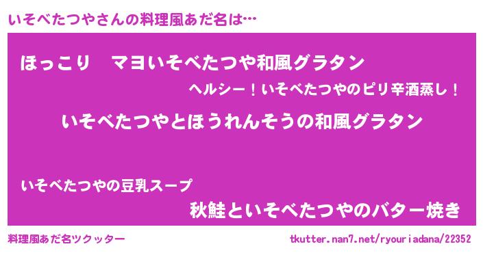| ヘコむあだ名 | 『いそべたつや(爆)』『いそ太郎』 |