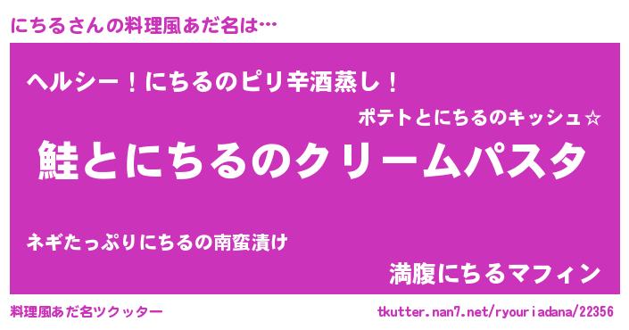 | 女子向けラノベタイトル風あだ名 | 『死神にちるの再婚』『闇のにちる』 |