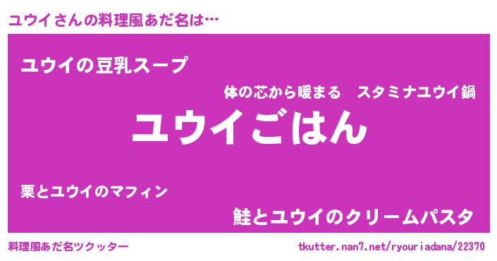 | 意味不明あだ名 | 『たけのこ科ユウイ属』『自称ユウイ』 |
