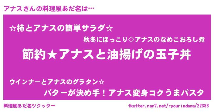 | 女子向けラノベタイトル風あだ名 | 『アナス姫と円卓の騎士』『アナス恋絵巻』 |