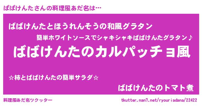 | 女子向けラノベタイトル風あだ名 | 『ばばけんたが死なない童話 林檎のばばけんたの診療簿』 |