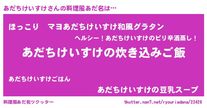 | 意味不明あだ名 | 『住所不定無職あだちけいすけ(65歳)』 |