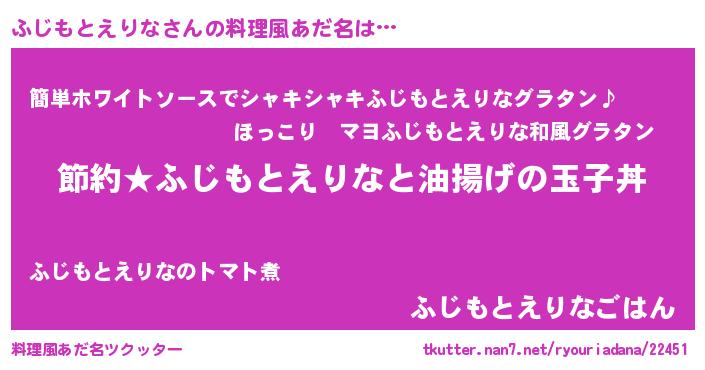 | ポケモン風あだ名 | 『フジチュウ』『ヒフジモトエリナ』 |