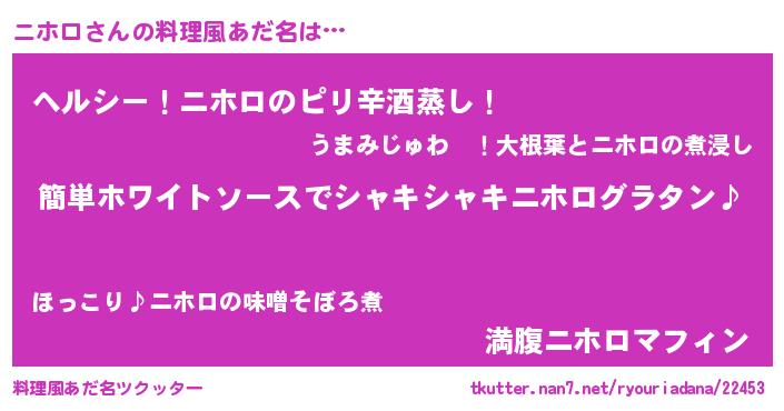 | 女子向けラノベタイトル風あだ名 | 『ニホロ様がみてる』『ニホロの婚約者』 |