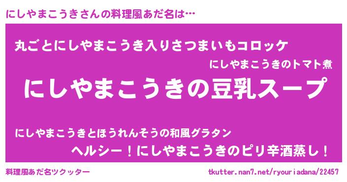 | ヘコむあだ名 | 『にしぷりん』『にしやまこうき(遠い目)』 |