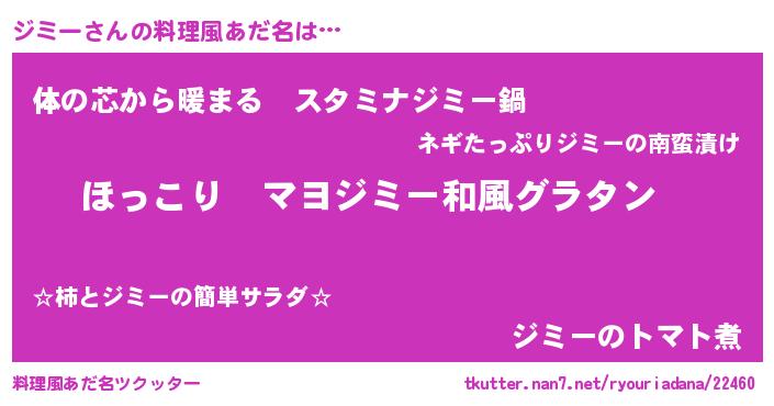 | 意味不明あだ名 | 『住所不定無職ジミー(7歳)』 |