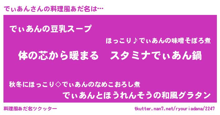 | 自動車の名前っぽいあだ名 | 『デクア』『デルトィパン』 |