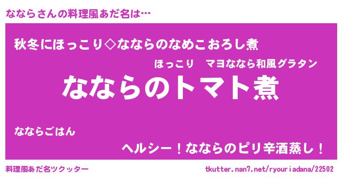 | 意味不明あだ名 | 『眠気覚ましガムななら味』『自称ななら』 |