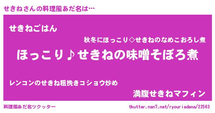 | 男性向けラノベタイトル風あだ名 | 『せきねの憂鬱』『セキネスレイヤー』 |