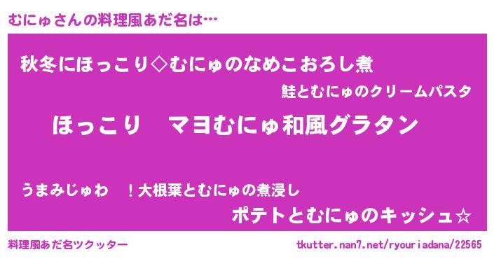 | 男性向けラノベタイトル風あだ名 | 『この素晴らしい世界にむにゅを!』 |