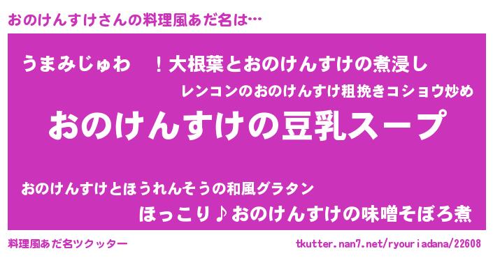 | 女子向けラノベタイトル風あだ名 | 『おのけんすけは平凡を望む』 |
