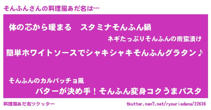 | 女子向けラノベタイトル風あだ名 | 『そんふん様がみてる』『そんふん恋絵巻』 |