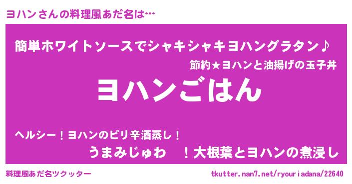 | ヘコむあだ名 | 『ヨハっ子』『レバニラ』 |