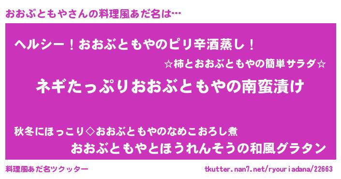 | ヘコむあだ名 | 『おおにー』『おおぶともや(爆)』 |