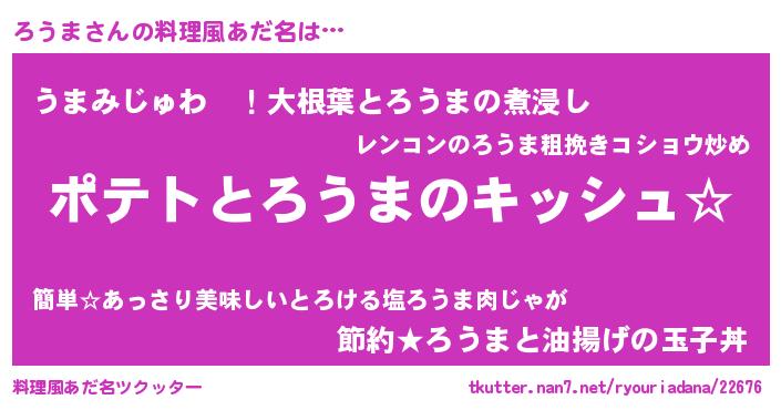 | ヒーロー風カッコイイあだ名 | 『幻影騎士ロウ』『ウルトラろうまマン』 |