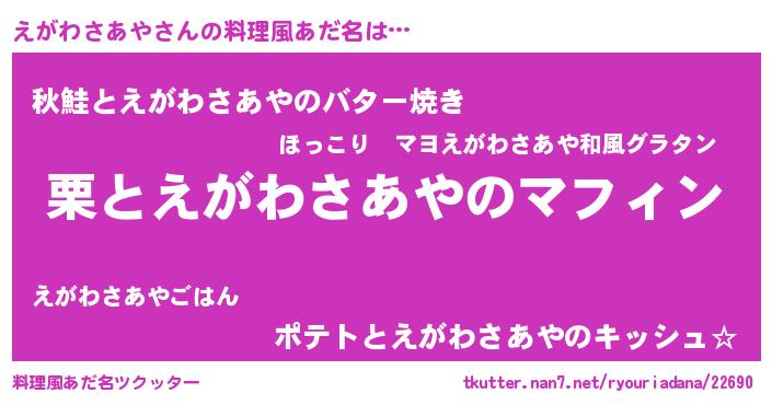 | 胡散臭い通販商品みたいなあだ名 | 『絶対に幸福をもたらす健康食品…その名も「えがわさあや」』 |