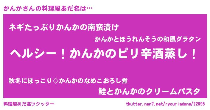 | 意味不明あだ名 | 『自称かんか』『ペロリンかんか』 |