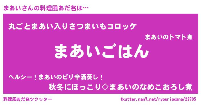 | ヒーロー風カッコイイあだ名 | 『仮面マアダー』『愛の使者まあい』 |