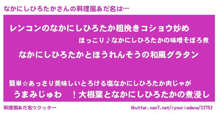 | 男性向けラノベタイトル風あだ名 | 『なかにしひろたか~年齢イコール彼女いない歴の魔法使い~』 |