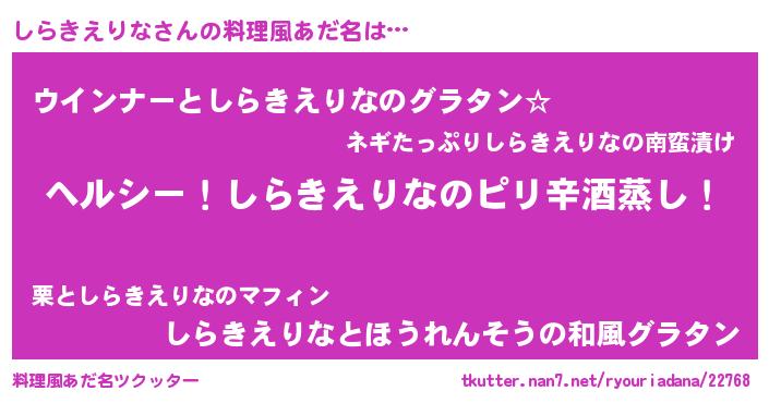 | 意味不明あだ名 | 『自称しらきえりな』 |