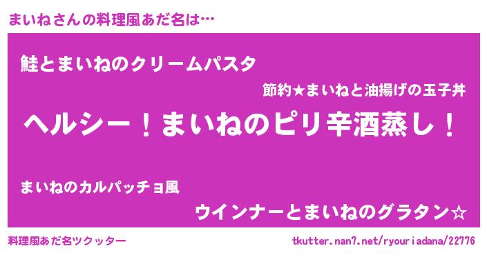 | 意味不明あだ名 | 『自称まいね』『眠気覚ましガムまいね味』 |