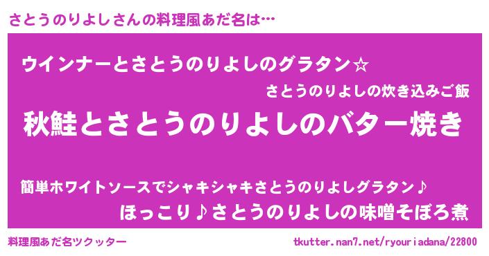 | 女子向けラノベタイトル風あだ名 | 『さとうのりよしの契約王妃』 |