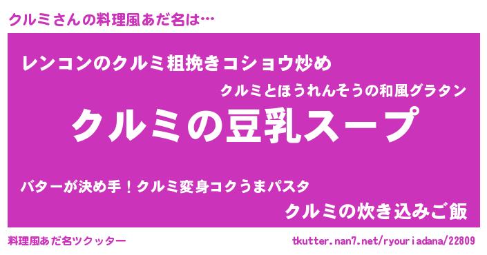 | 女子向けラノベタイトル風あだ名 | 『クルミは平凡を望む』『クルミ恋絵巻』 |