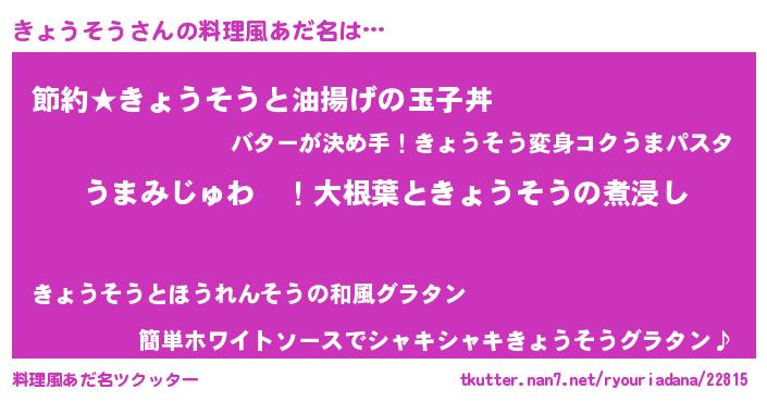 | ポケモン風あだ名 | 『キョウダネ』『キョチュウ』 |