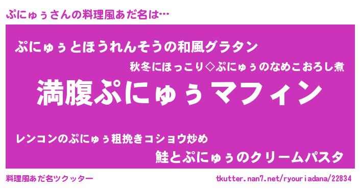 | 男性向けラノベタイトル風あだ名 | 『ぷにゅぅという概念が存在しない退屈な世界 』 |
