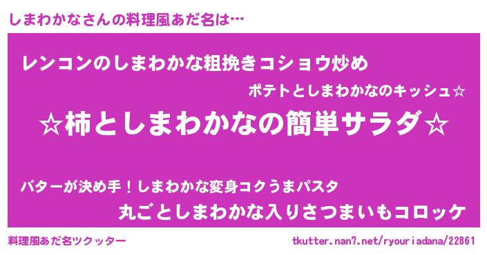 | 意味不明あだ名 | 『自称しまわかな』 |