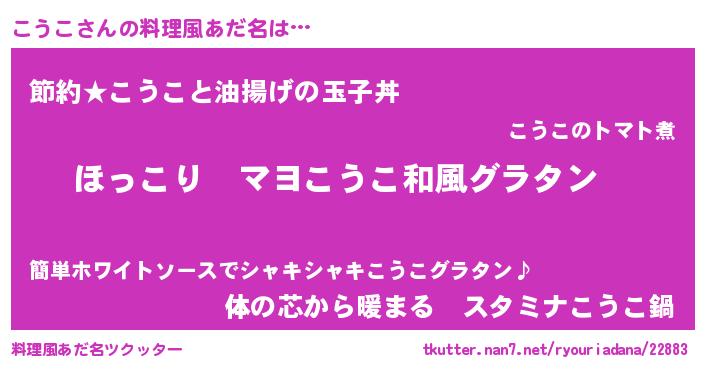 | 男性向けラノベタイトル風あだ名 | 『この素晴らしい世界にこうこを!』 |