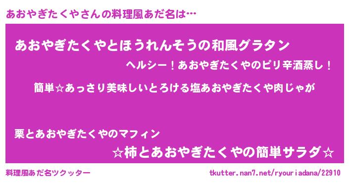 | ヘコむあだ名 | 『あおやぎたくや(爆)』『あおにー』 |