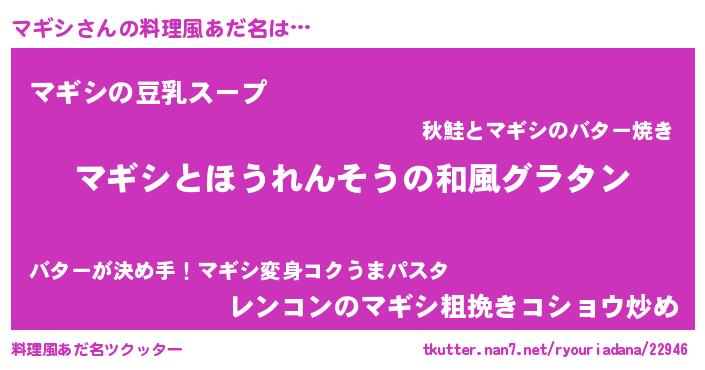 | 女子向けラノベタイトル風あだ名 | 『マギシの玉の輿計画!』『マギシ恋絵巻』 |
