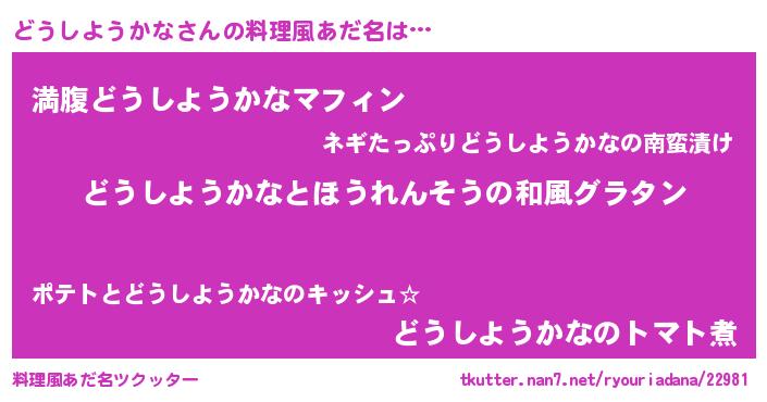| 胡散臭い通販商品みたいなあだ名 | 『前代未聞の健康食品…その名も「どうしようかな」』 |