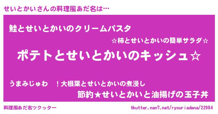 | ヘコむあだ名 | 『せいっぺ』『せいにー』『なまこ酢』 |