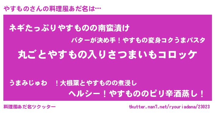 | 意味不明あだ名 | 『住所不定無職やすもの(9歳)』 |