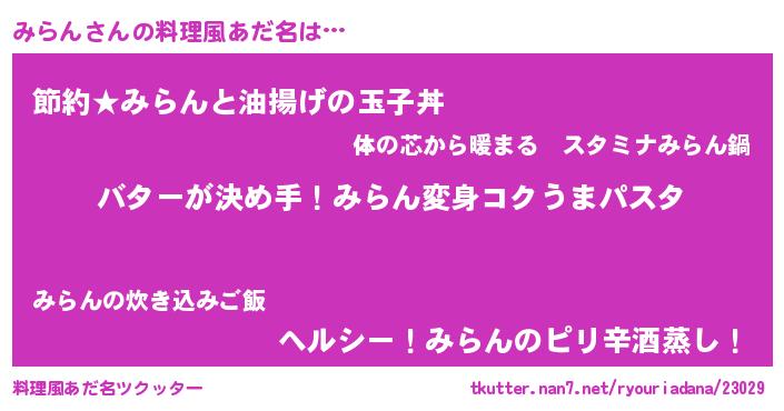 | 意味不明あだ名 | 『眠気覚ましガムみらん味』『自称みらん』 |