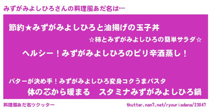 | 意味不明あだ名 | 『自称みずがみよしひろ』 |