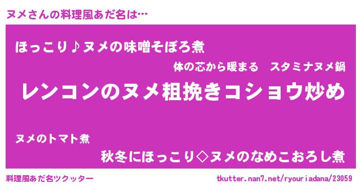 | 女子向けラノベタイトル風あだ名 | 『ヌメアンティーク』『ヌメの雑貨屋さん』 |