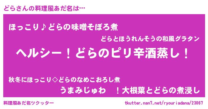 | 男性向けラノベタイトル風あだ名 | 『Re:どらから始める異世界生活』 |
