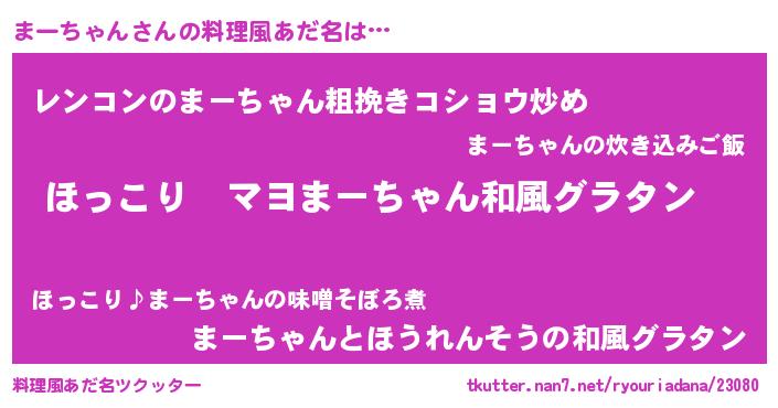 | 男性向けラノベタイトル風あだ名 | 『この素晴らしい世界にまーちゃんを!』 |
