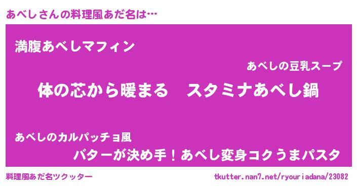 | 女子向けラノベタイトル風あだ名 | 『あべしの雑貨屋さん』『あべし恋絵巻』 |
