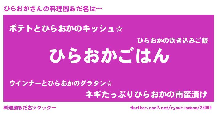 | 胡散臭い通販商品みたいなあだ名 | 『信頼と実績のサプリメント…その名も「ひらおか」』 |