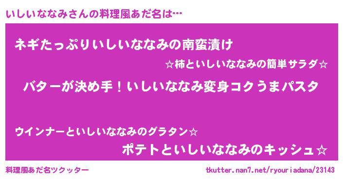 | 男性向けラノベタイトル風あだ名 | 『おまえをオタクにしてやるから、俺をいしいななみにしてくれ! 』 |
