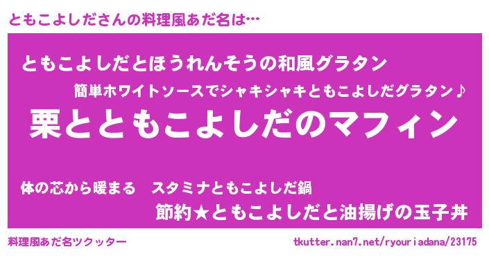 | 胡散臭い通販商品みたいなあだ名 | 『モテモテ間違いなしブレスレット…その名も「ともこよしだ」』 |
